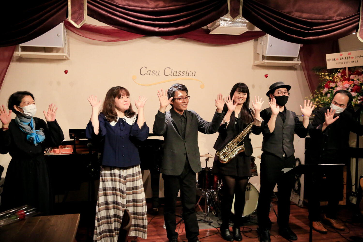 Vo.川元清史 Vo.山崎真衣子 Pi.近藤紀代子 Sax.奈良美里 Ba.野田満正 Dr.本間裕